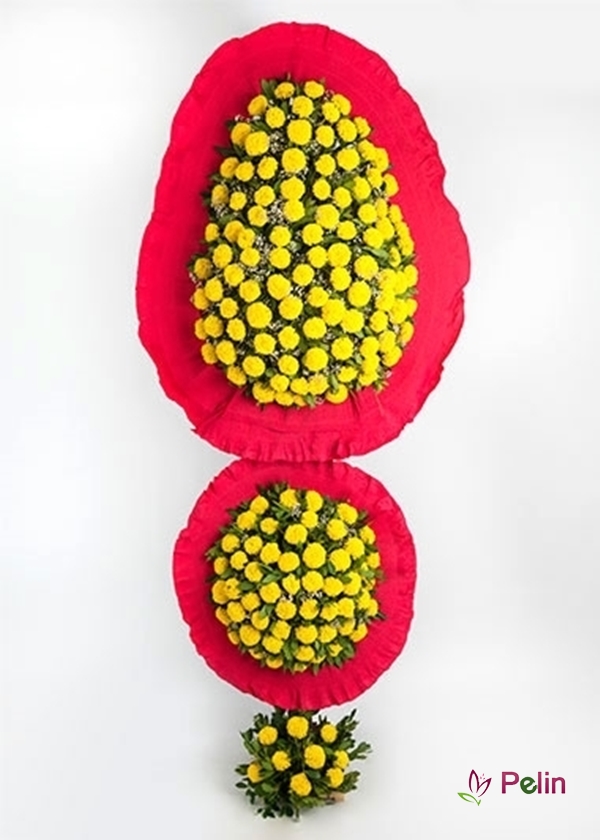 kırmızı çevre ve sarı çiçeklerden oluşan gelin duvağı